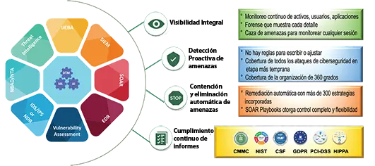 aiXDR Defensa a Profundidad (Defence-IN-Depth), Solucion de seguridad que integra en una sola plataforma a UEBA - SIEM - SOAR - EDR - VNB - NDR - MBAD - NTA.